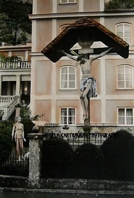 Across the Salzach River on the way to the Salzburg marketplace, I encountered this unusual scene. Salzburg, Austria Photograph handpainted with oils