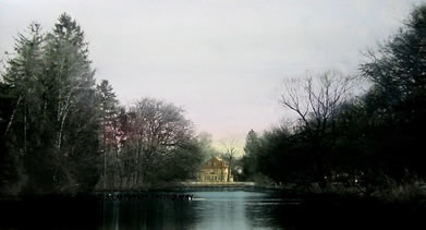 Captain Von Trapp watched as our our boat overturned on This pond after the 'Do Re Mi' sequence. Leopoldskron, Austria Photograph handpainted with oils