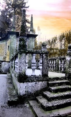 We used to play among the tables and chairs rigged with trick water fountains on our days off from shooting the film. This grand staircase lies to the right of the Old Forge Grotto